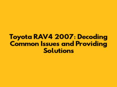 Owning a 2007 Toyota RAV4 can be a rewarding experience. By understanding the common problems and following these maintenance tips, you can help keep your SUV running reliably for years to come. Remember that regular maintenance and addressing issues as they arise are key to extending the life of your RAV4. If you aren't comfortable with repairs, don't hesitate to seek the assistance of a qualified mechanic.