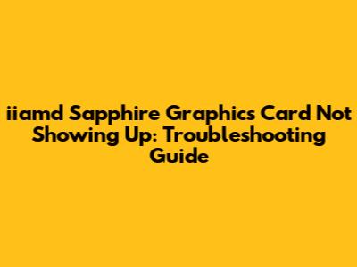 Is your iiamd Sapphire graphics card not showing up? Don't panic, guys! It's a common issue, and we're here to help you troubleshoot it. This guide will walk you through various steps to identify and resolve the problem, ensuring your system recognizes your Sapphire graphics card and you can get back to gaming or whatever graphics-intensive tasks you enjoy. We will cover everything from basic checks to more advanced troubleshooting techniques.