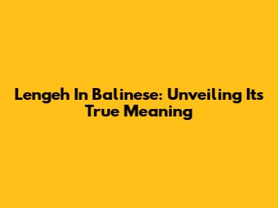 Lengeh In Balinese: Unveiling Its True Meaning