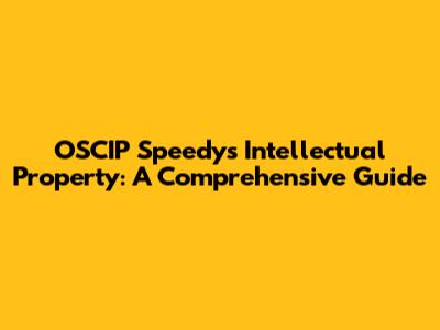 OSCIP Speedy's Intellectual Property: A Comprehensive Guide
