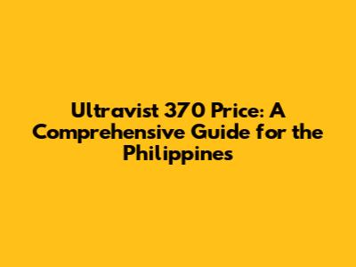 Estimated Price Range of Ultravist 370 in the Philippines