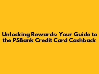 Hey everyone! Ever feel like your everyday spending could be doing more for you? Well, guys, it totally can! Today, we're diving deep into the PSBank Credit Card Cashback, a card that's all about putting money back in your pocket. We'll be breaking down everything you need to know, from how it works to how you can maximize those sweet, sweet rewards. Get ready to transform your spending habits and make every purchase count! Let's get started, shall we?