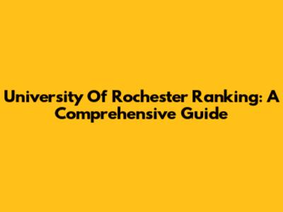 University Of Rochester Ranking: A Comprehensive Guide