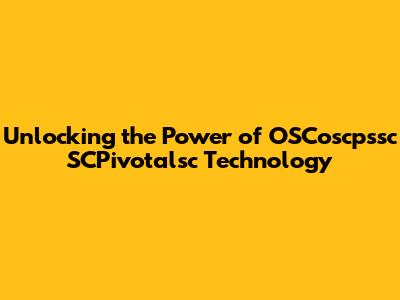What Exactly is OSCoscpssc SCPivotalsc Technology?