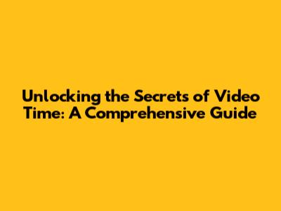 Understanding the Basics of Video Time