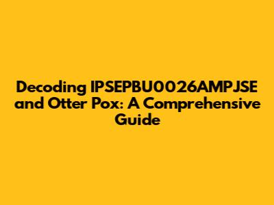 Q: How is IPSEPBU0026AMPJSE used in research? A: IPSEPBU0026AMPJSE is a unique identifier used to catalog, track, and study otter pox in scientific research.