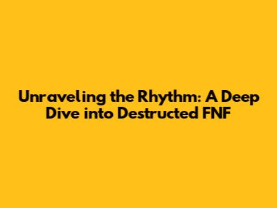 Hey there, game fanatics! Ever heard of Destructed FNF? If you're a fan of Friday Night Funkin' (FNF), chances are you've bumped into this awesome mod. And if you haven't, get ready to dive headfirst into a world where rhythm meets chaos. We're talking fresh beats, mind-blowing visuals, and a whole lot of fun. So, buckle up, because we're about to dissect everything that makes Destructed FNF the talk of the town. Let's get down to the nitty-gritty and find out what makes this mod so freakin' epic.