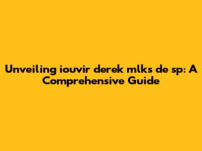 Hey guys! Let's dive deep into the world of iouvir derek mlks de sp. This might sound like a mouthful, and honestly, it can be a bit tricky to unpack without the right context. But don't worry, we're going to break it down step-by-step to help you understand what it's all about. This isn't just about throwing some jargon at you; it's about making sure you really get it. We'll explore the core concepts, the implications, and why it's something you should be paying attention to. Consider this your friendly, no-nonsense guide to demystifying a complex topic. Ready to get started? Let's go!
