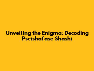 Hey guys! Let's dive deep into something a bit mysterious, shall we? Today, we're going to try and crack the code of "Pseishafase Shashi." Now, I know what you're thinking – what in the world is that? Well, that's exactly what we're here to figure out. Think of it as a fun puzzle, a linguistic adventure, or maybe even a secret code waiting to be unlocked. We'll explore everything from its potential origins and meanings, to its possible uses and impact. Get ready to put on your detective hats, because we're about to embark on an exciting journey of discovery. Along the way, we'll be breaking down each element, considering different perspectives, and piecing together clues like seasoned investigators. So, buckle up, and let's unravel the secrets of "Pseishafase Shashi" together. Trust me, it's going to be a wild ride! We'll start by looking at what this could possibly refer to, whether it's a person's name, a place, or maybe even just a made-up word. Each aspect will be carefully examined, as we strive to unveil the true essence of this enigmatic phrase. The objective is not just to understand the literal meaning of "Pseishafase Shashi", but also to comprehend its context, significance, and potential impact. Are you ready to dive into the mystery of Pseishafase Shashi? Let's get started. Remember, we are trying to find the best possible meaning for it and we are using all resources to create a wonderful experience for you!