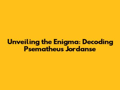 Demystifying Psematheus Jordanse: An Introduction