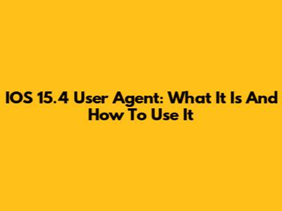 IOS 15.4 User Agent: What It Is And How To Use It