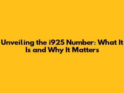 What Exactly is the i925 Number, Anyway?