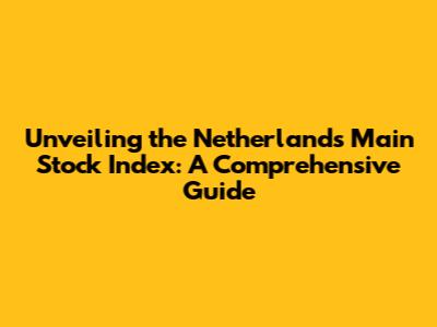 Hey there, finance enthusiasts and curious minds! Ever wondered about the heartbeat of the Dutch stock market? Well, look no further, because today we're diving deep into the Netherlands' main stock index, often known as the AEX index. This isn't just some random collection of numbers; it's a powerful barometer of the Dutch economy, a reflection of the fortunes of some of the country's biggest companies, and a key tool for investors worldwide. In this comprehensive guide, we'll unravel everything you need to know about the AEX, from its composition and history to its significance for the global financial landscape. So, grab a cup of coffee, settle in, and let's get started on this exciting journey into the heart of Dutch finance! We'll explore the AEX's component stocks, its performance metrics, its role in the broader market, and why it matters to you, whether you're a seasoned investor or just starting to dip your toes into the world of stocks. Consider this your all-in-one resource for understanding the Amsterdam Exchange Index, the premier indicator of the health and wealth of the Netherlands' business environment. Let's make sure you understand the basics before we start digging in deep. So, let's break down the fundamentals and see why the AEX index is the boss when it comes to the Dutch stock market. We're going to cover everything from what it is to how it works and why you should care. Ready? Let's go! This article is designed to be your go-to guide, ensuring you're well-equipped with the knowledge needed to navigate the Dutch stock market with confidence. We'll start with the basics, then gradually delve into more complex aspects, like market analysis and investment strategies related to the AEX. This will help you comprehend the dynamics of the Netherlands' financial landscape. The AEX is more than just a list of stocks; it's a mirror reflecting the economic vigor of the Netherlands.
