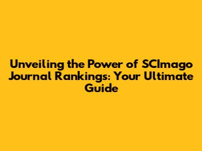 Why Does SCImago Journal Ranking Matter? The Significance and Impact