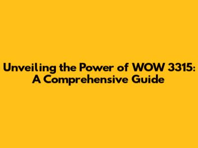 Deep Dive: How to Research and Understand WOW 3315 Further