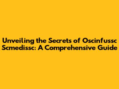 What Exactly is Oscinfussc Scmedissc?