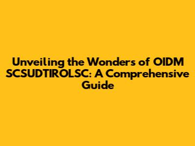 Diving into the Basics of OIDM SCSUDTIROLSC