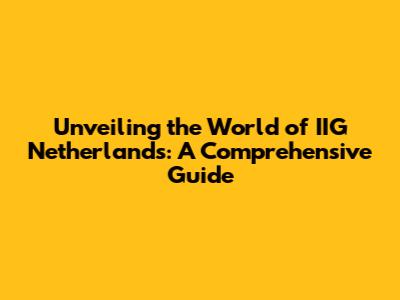 Hey guys! Ever heard of IIG Netherlands? If you're scratching your head, no worries! This guide is your one-stop shop for everything you need to know about this fascinating entity. We're going to dive deep, exploring what IIG Netherlands is all about, its activities, its impact, and why it might just be something you should keep on your radar. So, buckle up, grab your favorite beverage, and let's get started! We'll cover everything from the basics to the nitty-gritty details, ensuring you have a solid understanding of IIG Netherlands by the time we're done. Ready to become an expert? Let's go!