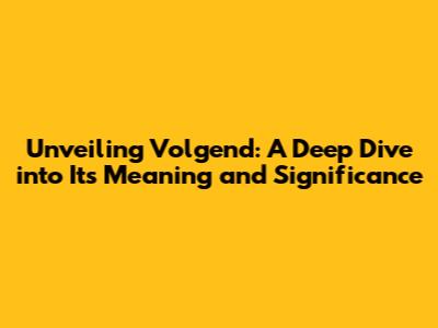 Demystifying Volgend: What Does It Really Mean?