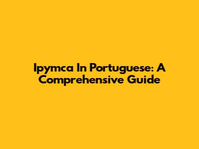 Ipymca In Portuguese: A Comprehensive Guide