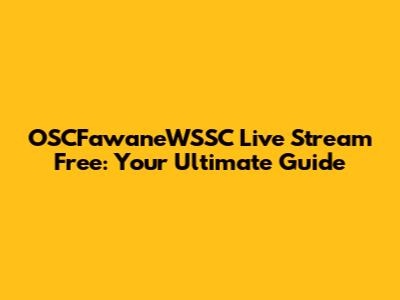 Finding Free OSCFawaneWSSC Live Streams