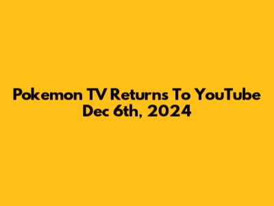 Pokemon TV Returns To YouTube Dec 6th, 2024
